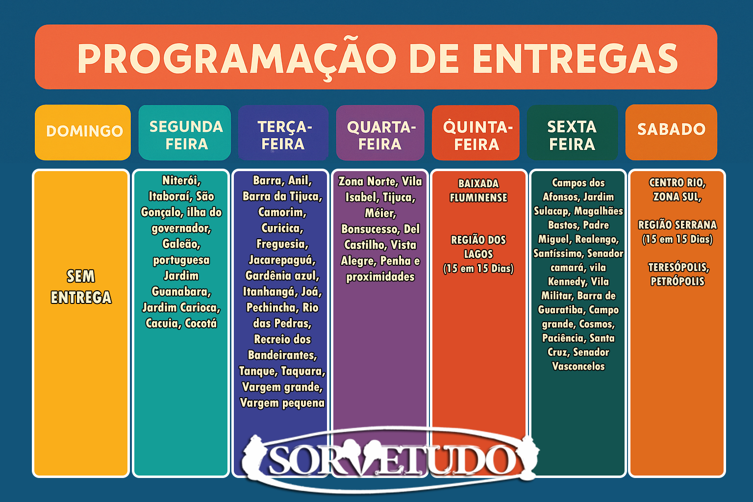 Verifique a nossa PROGRAMAÇÃO DE ENTREGAS e fique atento para a data de recebimento do seu pedido.